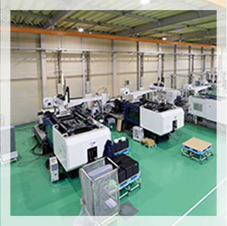 様々な素材、サイズに対応すべく設置された全8台の樹脂成型ラインは環境に配慮しつつ、